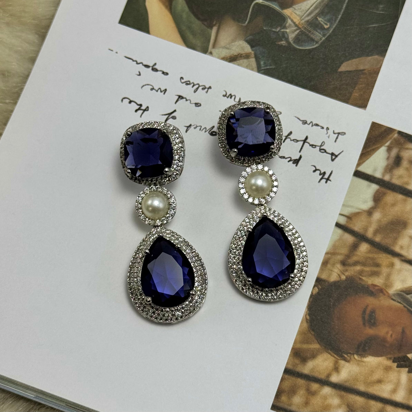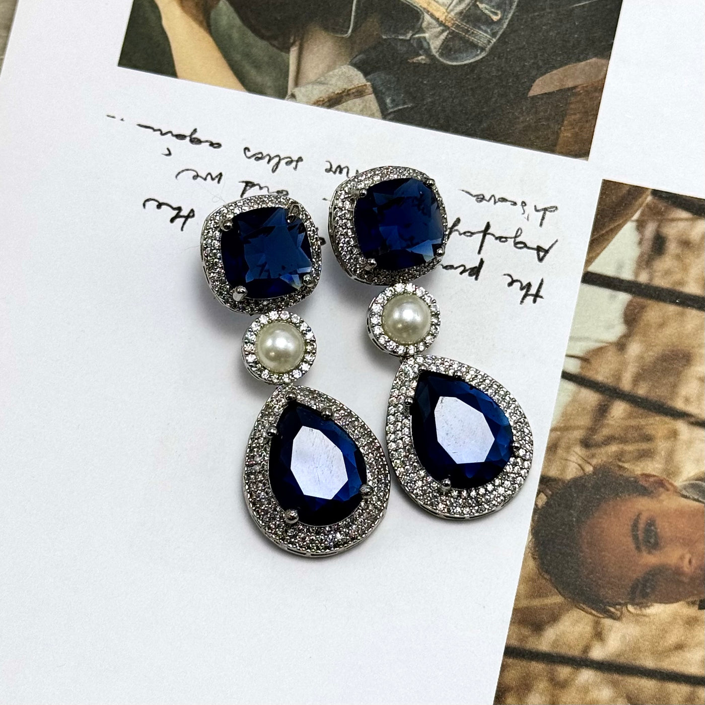 Nox celebrates refined glamour through a flawless balance of form and light. Each stone is handset within a pavé border, accentuated by a luminous pearl centerpiece. The teardrop silhouette elongates the neckline with effortless grace, offering the perfect statement for evening elegance or timeless celebrations.
